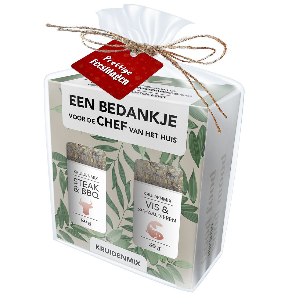 Kruidenpotjes Set - Bedankt Chef - Cadeauverpakking - Kerst label